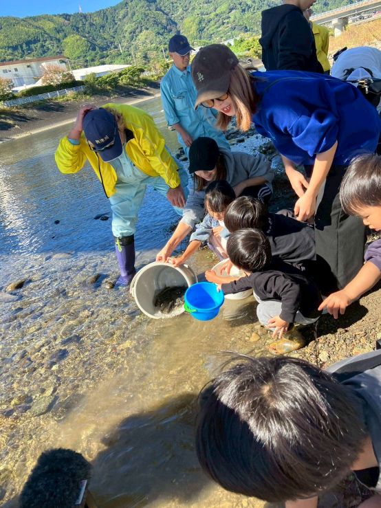 R7.11.3 興津川河口付近(興津東町)にて親鮎を放流いたしました。