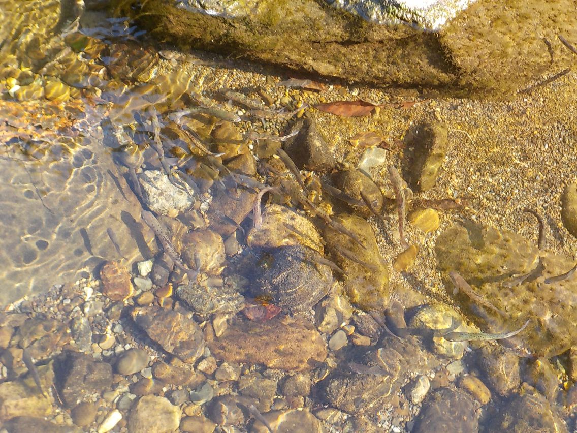 来年度の遡上を期待して、30㎝100gほどの親鮎を10月中旬に産卵場を整備したあたりに今秋計100kgを放流しました。