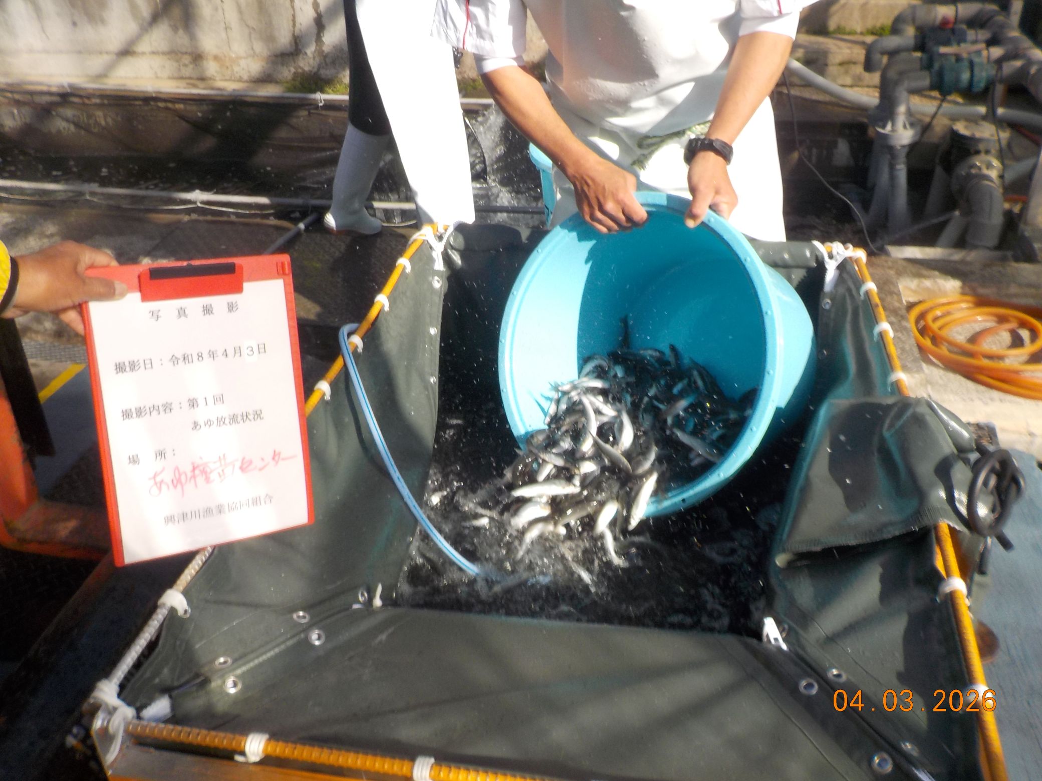 R7.11.3 興津川河口付近(興津東町)にて親鮎を放流いたしました。
