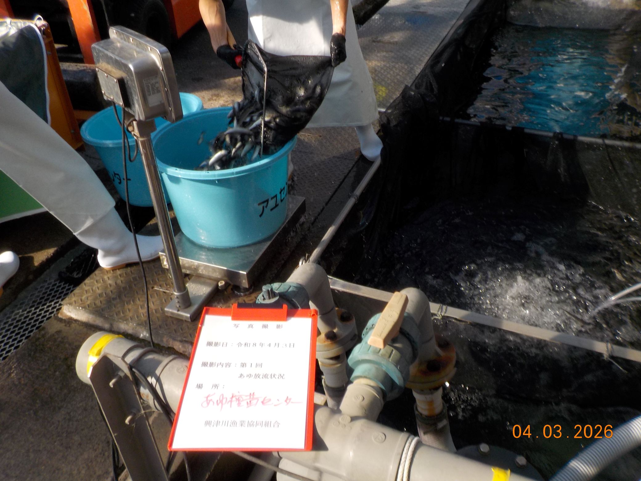 R8.4.3 人工産の鮎の稚魚(約20g~30G)を400Kg放流いたしました。