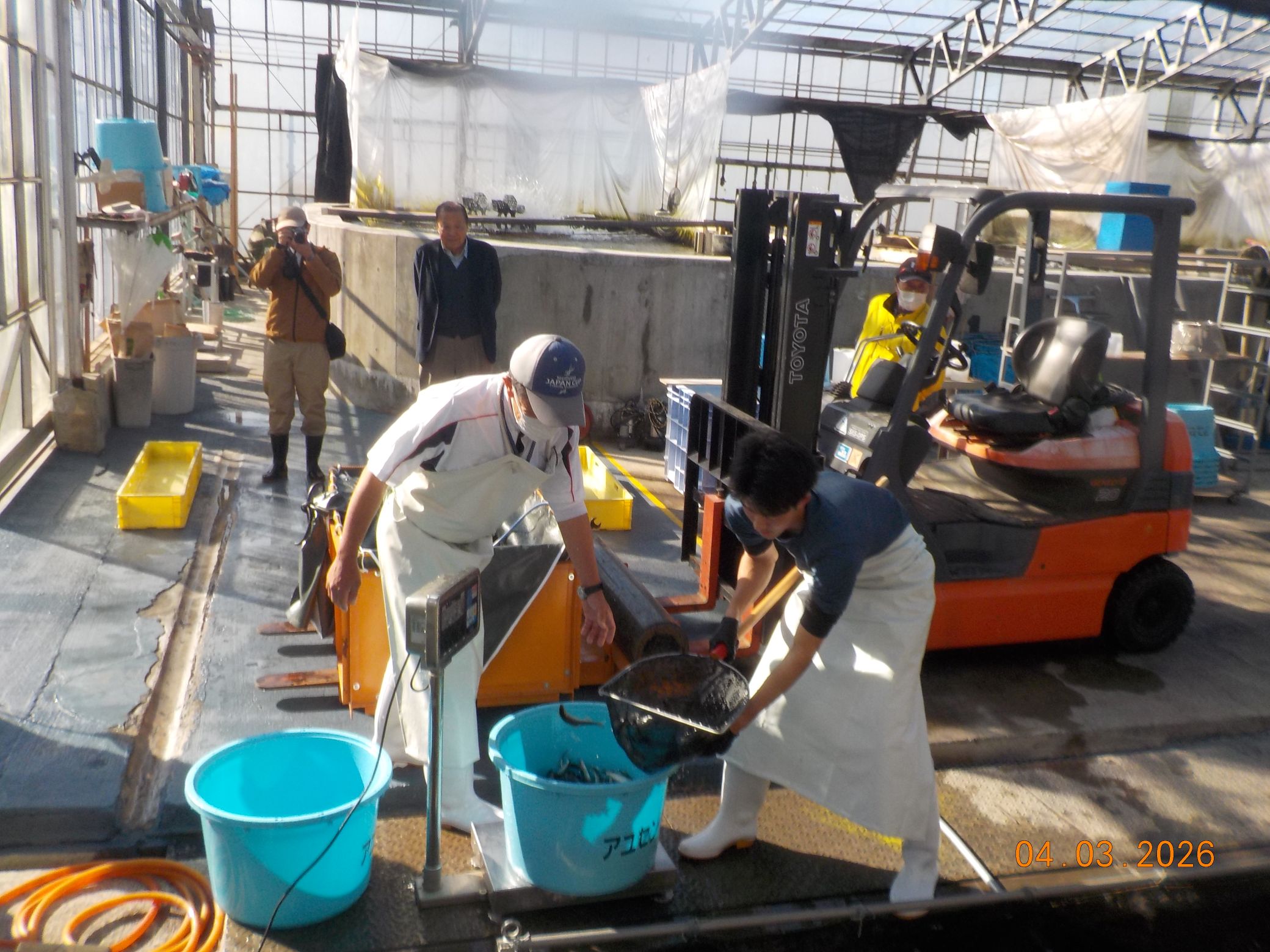 先日放流した際に、鮎の種苗センターにて検収も行ってきました。